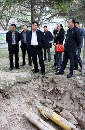【宁夏大学新闻中心讯 黄二宁/图 赵世芳/文】为了贯彻落实第六次党代会精神,10月6日下午,何建国校长在张成副校长及基建处、后勤集团等部门负责人的陪同下,利用假期赴B区关注惠民工作——供暖管道改造工程。