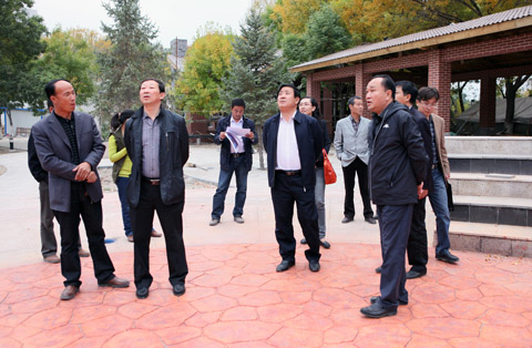 现场办公会结束后,何建国校长一行还视察了B区校园文化广场建设情况。对灯饰、电子屏、景观墙、休闲凳、景观植物、湖滨咖啡屋等的设计进行了详细问询并提出了中肯的意见,给出了“群策群力、宣传集体拼搏精神”“融入宁夏精神元素、做好宁夏文化传承工作”等原则性的指导。另外,“秋叶不烧美化草坪”等想法也在勘察交流中得到了充分的认可和吸收,将会体现在以后的校园景观设计中。