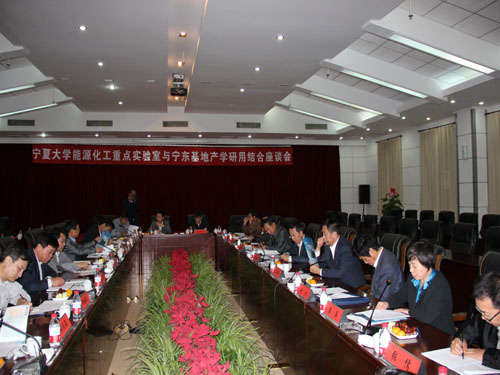 【宁夏大学新闻中心讯 能源化工重点实验室 齐之锴】为落实自治区党委张毅书记在宁夏大学调研时关于“促进宁夏大学能源化工重点实验室与宁东能源化工基地产学研用结合”的精神,自治区科技厅、宁东能源化工基地管委会、宁夏大学三方及宁东基地部分企业于2012年9月28日下午在宁东基地展示中心召开了“宁夏大学能源化工重点实验室与宁东基地产学研用结合调研座谈会”。