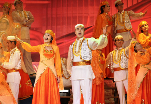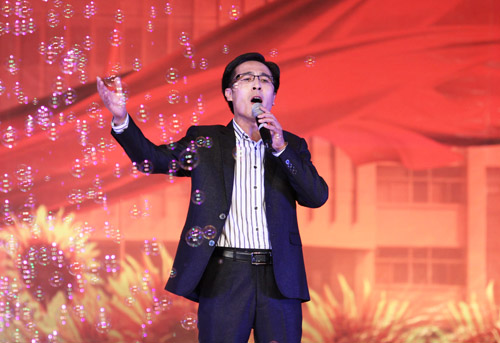 当晚七点三十分,男女群舞《花开塞上》拉开了演出的序幕。我校广大师生编演的舞蹈、歌曲、配乐诗朗诵等节目充分展示了我校师生的艺术才华和激扬向上的精神风貌。人文学院师生创作表演的配乐诗朗诵《青春宁大》、音乐学院的女子群舞《绿动青春》、体育学院的男女群舞《旗帜》等展现了一代宁大人青春的生命之光;民歌表演唱《花儿与少年》用独具特色的表演彰显了民族艺术的魅力,展现了回族青年对美好生活的热爱;歌曲联唱《心中歌儿唱给党》表达了师生对党的深厚情谊;男女声四重唱《举杯吧,朋友》、新民乐《祝福吉祥》等为宁夏大学走过五十四载获得的沉甸甸的丰收歌唱;演出中,新一届校党委常委走上舞台与师生见面并为获得2012年校级文明单位授牌。晚会在男女群舞《托起明天的太阳》中落下帷幕,全体代表爆发出经久不息的掌声。