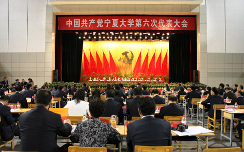 大会充分肯定了中共宁夏大学第五届委员会的工作。过去八年是学校事业发展极不平凡、十分关键、成就显著的八年。学校党委在自治区党委、政府的坚强领导下,坚持以科学发展观为指导,紧紧抓住省部共建、西部大开发等有利时机,顺利完成了第五次党代会确定的本科教学工作水平评估“达优”和“211工程”立项建设两个具体目标。面对“211工程”建设的重大机遇,校党委团结和带领全体党员和广大师生,站在打造自治区经济社会发展服务中心的新高度,始终坚持“质量立校、人才强校、特色兴校、管理促校、开放办校”的办学思路和“特色发展、统筹兼顾、重点突破、分类指导”的工作方针,着力强化内涵发展,提高办学质量,凝炼特色学科,在国家重点学科、国家重点(培育)学科、一级学科博士点、博士后科研流动站、海外孔子学院、“长江学者奖励计划”特聘教授等方面实现历史性突破,学校的人才培养质量、科学研究水平、服务地方能力和文化传承创新均迈上了新的台阶,党委班子领导科学发展的能力进一步提高,学校的整体办学实力显著增强,影响力明显提升,宁夏大学又站在了一个新的历史起点上。大会对第五次党代会以来校党委的工作给予了高度评价。