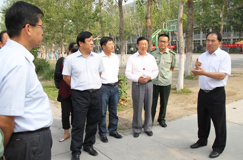 【宁夏大学新闻中心讯 黄二宁/图 胡玥/文】为了迎接党的十八大和学校党代会的召开,营造一个安全稳定和谐的校园环境,确保学校各项工作有一个良好的开端,9月3日下午,校党委书记齐岳、校长何建国、副书记赵利宁、副校长张成、王春秀在两办等相关部门负责人的陪同下视察了校园安全稳定工作。