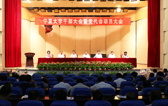 【宁夏大学新闻中心讯 黄二宁/图 赵世芳/文】 8月27日下午,我校新学期干部大会暨第六次党代会动员大会在学校音乐厅举行。校领导齐岳、何建国、赵利宁、王燕昌、张成、孔斌、王春秀出席会议,全校副处级以上干部200余人参加会议,会议由何建国校长主持。