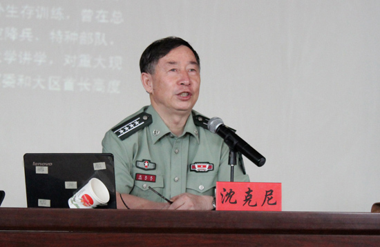 沈克尼大校联系国际热点事件,通过多媒体,论述了当前国际形势和国防建设的重要性,同时,结合时政热点,对我国的周边局势进行细致分析,以增强大学生忧患意识,引导广大学子正确认清形势。