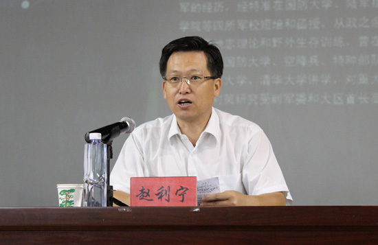 【宁夏大学新闻中心讯 王静俣/文 张鹏/图】为了增强学生军训与军事理论教育要密切结合的意识,7月23日上午,我校在大学生活动中心,隆重召开军事理论专题报告会。预备役大校沈克尼在会上做了精彩报告,2011级全体军训师生5000余人聆听了报告。校党委副书记赵利宁主持报告会。