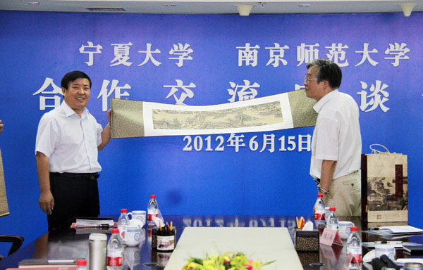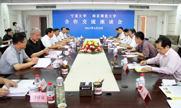 【宁夏大学新闻中心讯 黄二宁/图、文】6月15日上午,宁夏大学与南京师范大学合作交流座谈会在我校A区主楼十一楼会议室举行。全国政协常委、江苏省政协副主席、南京师范大学副校长陈凌孚,南京师范大学学科办、211办主任喻平及南京师大学科办、211办相关人员,宁夏大学校长何建国、副校长王燕昌以及对外合作交流处、发展规划处、211办等相关单位负责人出席座谈会。王燕昌副校长主持座谈会。