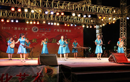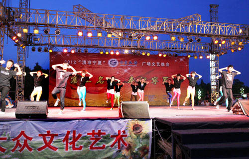 宁夏大学新闻中心讯 黄二宁/图 王静俣 张新民/文炎炎夏季,草盛花红。6月3日晚,由宁夏大学承办的2012“清凉宁夏”广场文化活动之“塞上名校,奉献宁夏” 专场文艺晚会,在银川市光明广场精彩举行。