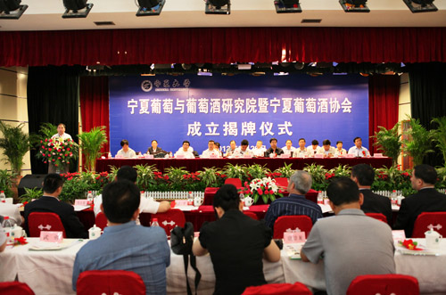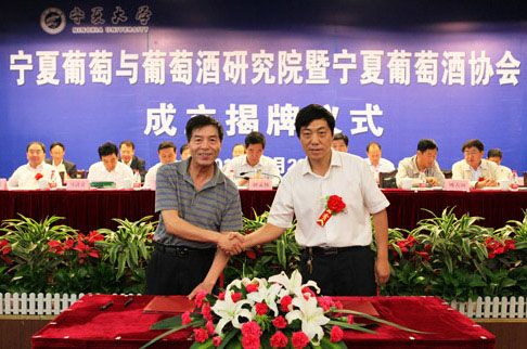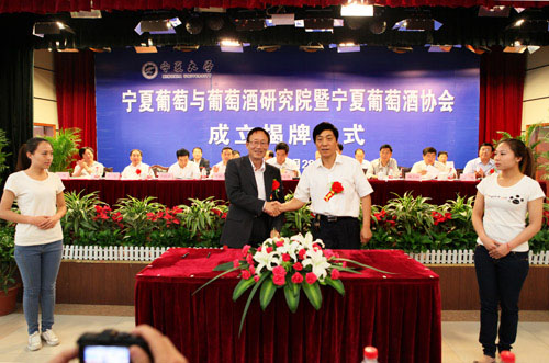 仪式上,自治区科技厅政策法规处井玉平处长宣读了《关于成立宁夏葡萄与葡萄酒研究院的批复》。自治区政协副主席解孟林为宁夏葡萄与葡萄酒研究院揭牌。自治区商务厅巡视员王法正,自治区社会组织工委副书记、民政厅党组成员张成军为宁夏葡萄酒协会揭牌。宁夏大学副校长许兴分别与宁夏葡萄酒协会会长张金山、宁夏农垦西夏王实业有限公司总经理王宏、广夏(银川)贺兰山葡萄酿酒有限公司总经理卢大晶签订合作协议。