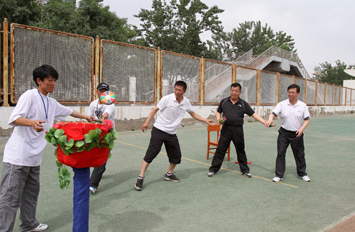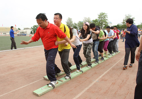 多人跳绳拉开了趣味运动会的序幕,2人摇绳,5人跳绳考验的不是个人水平而是团队协作精神,“1、2——80,81……”,数数声在每个队伍中响起,轻松有趣的比赛引来教职工阵阵欢笑;踏板比赛进行时,现场响起一阵又一阵整齐响亮的“左,右,左……”、“一,二,一”之声。口号带动着步伐,口号也彰显着士气;在节水抗旱接力中,大家精诚团结,体现了集体主义精神和一往无前的大无畏精神;新增项目搭桥过河受到了教职工的欢迎,大家玩的不亦乐乎,你追我赶,把运动场气氛带向了高潮……。在新颖有趣的各项比赛中,教职工们个个全力投入,力争第一,赛出了个人的风采,赛出了集体的凝聚力。整个运动会的气氛热烈而又紧张,扣人心弦而又不失活泼。通过这次运动会,我们看到了平日里站在讲台前的老师们的另一面风采。胜利时,他们也会如孩子般在场上欢呼雀跃。在赛场上尽情挥洒着激情,释放着热情。