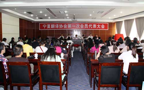 【宁夏大学新闻中心讯 外国语学院】2012年5月18日,宁夏翻译协会第一次会员代表大会暨成立大会在宁夏大学国际交流中心隆重举行。宁夏大学副校长李星、北方民族大学副校长赵杰出席会议。宁夏社会科学界联合会学会管理处处长马晓军、宁夏民政厅民间组织管理局办公室主任陈刚、宁夏大学外国语学院院长周玉忠、宁夏医科大学外国语教学部主任滕京、北方民族大学外国语学院院长阎丽君、宁夏师范学院外国语学院院长赵晓红等领导以及来自宁夏各高校的会员代表、宁夏教育电视台、宁夏日报、宁夏大学报的媒体记者等100余人参加了成立大会。