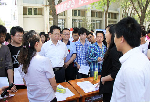 【宁夏大学新闻中心讯 黄二宁/图 大学生就业创业指导服务中心/文】5月16日下午,由自治区大中专毕业生就业指导服务中心主办,我校大学生就业创业指导服务中心承办的“宁夏2012年应届普通高校毕业生离校前专场就业洽谈暨信息咨询会”在我校金波湖畔举行。校党委副书记赵利宁、自治区教育厅学生处处长杨文刚、自治区就业与创业服务局局长陈晓军、自治区人力资源开发服务局副局长刘燕、银川市人才开发交流服务中心主任金晶、西夏区武装部部长刘文森、全区各高校就业部门负责人以及全区高校4000余名学生参加了就业洽谈暨信息咨询会。会议开幕式由我校大学生就业创业指导服务中心负责人程胜利主持。