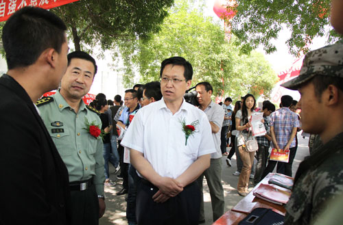 为鼓励在校大学生积极响应国家号召,踊跃报名参军入伍,西夏区武装部在会议现场专门开展了大学生应征入伍政策咨询活动。向大学生宣传了2012年国家鼓励普通高等学校应届毕业生应征入伍服义务兵役的有关政策。