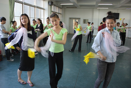 活动开始,民族舞蹈专业的同学们向留学生展示了藏族舞、蒙古族舞、胶州秧歌以及中国民间舞的基本动作,举手投足间传递着浓郁的民族文化气息,深深吸引着留学生的目光。国际教育学院的留学生们也不甘示弱,纷纷上场展现自己的舞蹈技艺,排练厅里不时响起阵阵掌声,乌兹别克斯坦的金扬与阿尔及利亚的徐鹏合作,一段迈克杰克逊的模仿秀将气氛推向高潮。在互动交流环节中,舞蹈专业的学生耐心讲解和示范中国民族舞的基本动作,留学们认真学习、仔细模仿;喜欢现代舞专业的学生还同留学生一起跳起了激情动感的舞蹈。体验活动结束后中外学生仍意犹未尽,纷纷合影留念,不肯离去。