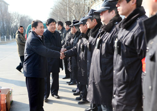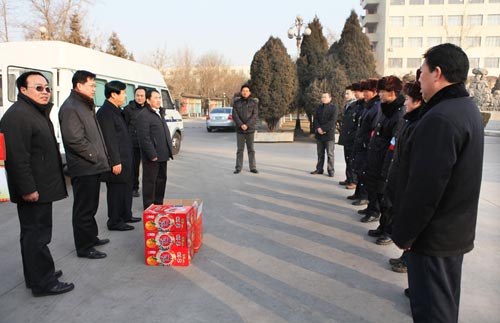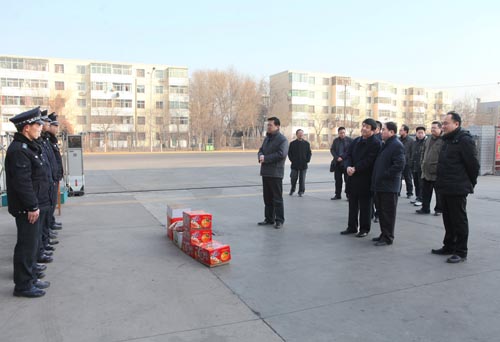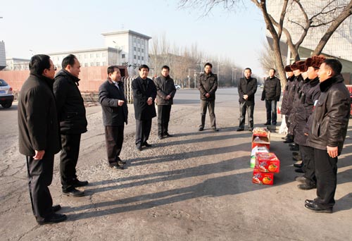 校领导表示,新春佳节是千家万户团圆的时刻,但保卫、后勤部门为了保证春节期间师生员工的正常生活,仍有部分干部职工放弃了和亲人团聚的机会,坚守在工作的一线,体现了“舍小家顾大家” 的无私奉献精神。齐岳书记、何建国校长代表全校师生员工向春节和寒假期间坚守岗位的干部职工表示衷心感谢,并勉励他们再接再厉,确保师生员工过一个温馨、祥和、安全的佳节和假期。