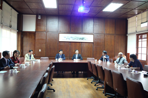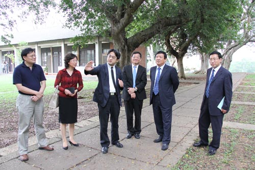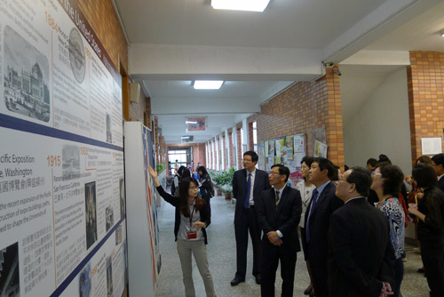 4月19日,代表团一行在台中访问了东海大学,并与东海大学副校长叶芳柏、教务长、学务长等相关部门人员进行了座谈。在叶校长的陪同下参观了东海大学校园,绿树成荫的文理大道、四合院式的教学建筑及恬静的教学实验农场,到处都体现了东海大学人文荟萃、学风开明。