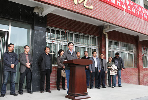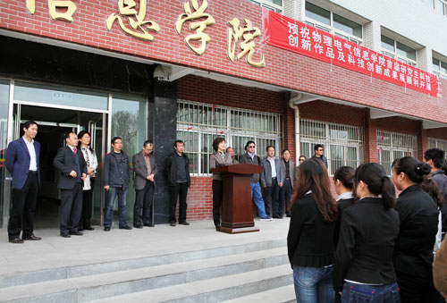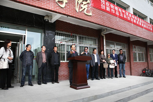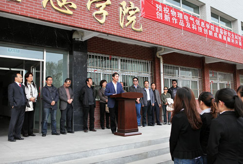【宁夏大学新闻中心讯 黄二宁∕图 张丽艳∕文】4月18日下午,宁夏大学物理电气信息学院首届“研究生创新长廊”伴随春的脚步精彩亮相。在开幕式上,物电学院院长李新碗教授和研究生院院长王银春教授分别致辞,物电学院09级研究生班主任、研究生导师张轶炳介绍了本次活动的筹备和开展情况。物理电气信息学院全体研究生参加了开幕式。开幕式由物电学院副院长车进主持。