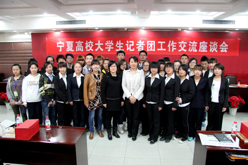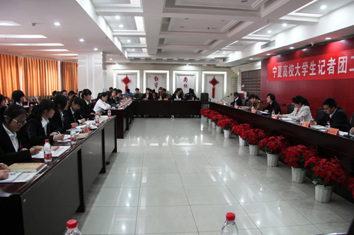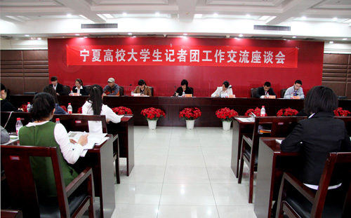 宁夏大学记者团常务副团长马璐璐、宁夏医科大学副团长邱益红、中国矿业大学银川学院记者团团长赵少文就各校记者团组织机构和发展概况进行了座谈交流,三校记者团各部部长就部门职能和开展的工作交换了意见。
