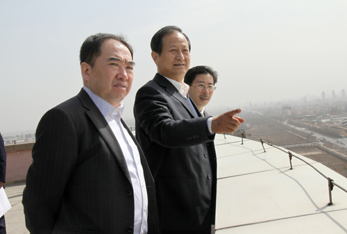 调研组在自治区教育厅副厅长冀永强,我校党委书记齐岳、校长何建国、副校长李伟、李星以及相关部门负责人的陪同下对我校民族预科教育学院、C区第二学生食堂、锅炉房进行了考察并在行政主楼鸟瞰了校园全景。