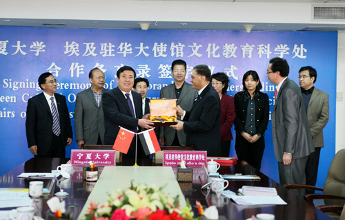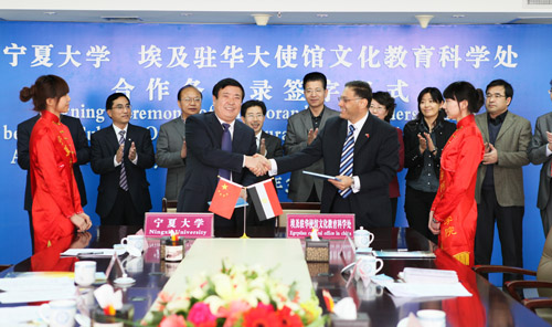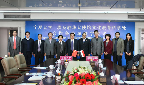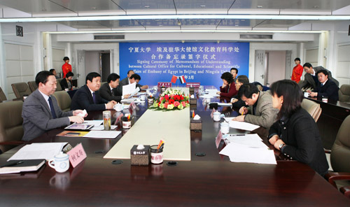 【宁夏大学新闻中心讯 黄二宁∕图 曾华∕文】 3月26日上午,宁夏大学与埃及驻华大使馆文化教育科学处合作备忘录签字仪式在我校举行。何建国校长和埃及驻华大使馆文化教育科学处文化参赞穆罕默德·艾布·阿里博士代表双方在合作备忘录上签字并讲话。我校副校长李星主持签字仪式。