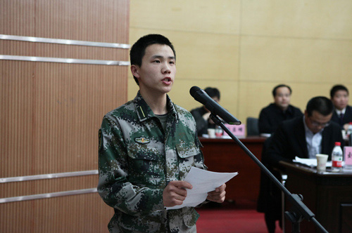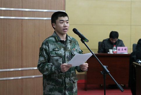 会上,6名国防生用诗朗诵的形式为大家讲述了雷锋生平事迹,使大家全面深入地了解了雷锋的成长历程和光辉事迹。学生工作部、学生处刘伯川副处长组织学习重温了党和国家领导人为雷锋同志的题词。驻校选培办何义时主任对宁夏大学国防生“学雷锋、心向党、讲品德、见行动”活动进行安排部署。机械学院2010级交通运输专业刘云飞代表国防生表达了用实际行动将雷锋精神薪火相传的决心;物电学院2009级电气工程与自动化专业马晨辰代表国防生党员向全校学生党员发出了自觉弘扬雷锋精神,争做雷锋传人的倡议。