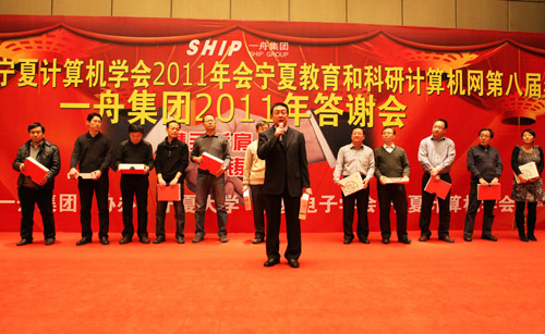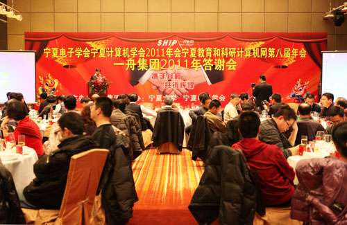 【宁夏大学新闻中心讯 黄二宁 】2月3日下午,由浙江一舟集团主办,宁夏大学、宁夏电子学会、宁夏计算机学会协办的宁夏电子学会、宁夏计算机学会2011年会,宁夏教育和科研计算机网第八届年会在银川凯宾斯基酒店举行,自治区教育厅副厅长薛亚平、自治区安全厅副厅长程建国、自治区办公厅巡视员丁劲松、宁夏大学副校长、宁夏电子学会、宁夏计算机学会理事长王燕昌、宁夏广播电视大学副校长、宁夏电子学会、宁夏计算机学会副理事长王冀川、宁夏理工学院书记刘炜、中国电信宁夏分公司副总经理薛敬进、一舟集团中国区总裁谭小敢等领导出席大会,宁夏教育界、企业界代表近200人参加大会。会议由宁夏电子学会秘书长、宁夏大学数学计算机学院总支书记刘富祥主持。