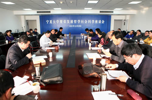 【宁夏大学新闻中心讯 黄二宁/图 翟伟 /文】12月29日下午,我校繁荣发展哲学社会科学座谈会在校A区主楼10楼会议室举行。校党委书记齐岳、副校长李伟、谢应忠出席会议。相关学院院长、副院长、各科研单位主任、副主任60余人参加会议。座谈会由李伟副校长主持。