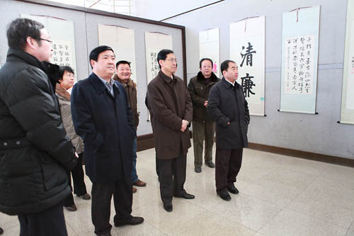 随后,参加开幕式的领导与师生观看了第三届廉政书画摄影作品展。本次展览共展出书画、摄影作品180余幅。