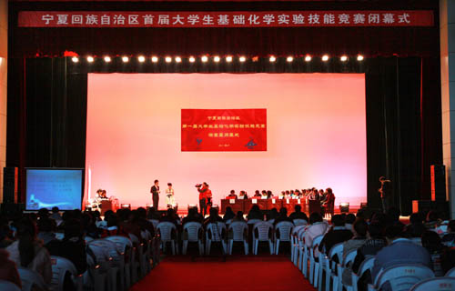 本次竞赛由自治区教育厅主办,化学化工学院基础化学实验中心作为“国家级实验教学示范中心建设单位”承办了比赛。比赛设置了个人项目竞赛和团队项目竞赛,竞赛形式有笔试、实验技能测试、DV展示、综合知识现场抢答。来自宁夏大学、宁夏医科大学、北方民族大学、宁夏师范学院、中国矿业大学银川学院、宁夏理工大学、银川大学等7所高校的21支代表队参加竞赛。我校化学化工学院、生命科学学院、农学院、资源与环境学院的学生也分别组队参赛。竞赛共评选出个人奖项20个,团体奖项6个,其中,化学化工学院钾钙钠队和羟醛缩合队分别获得团体一等奖和二等奖。