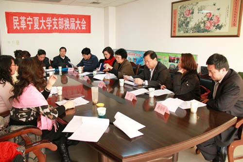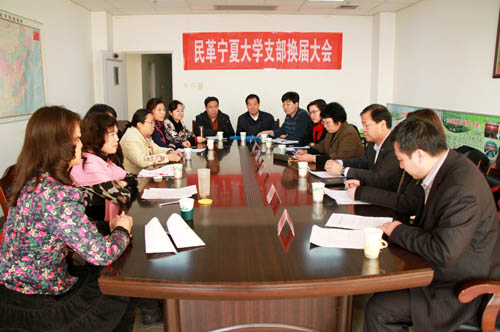 【宁夏大学新闻中心讯 黄二宁/图统战部/文】12月7日下午,民革宁夏大学支部换届选举大会在主楼14楼会议室召开。民革宁夏区委会副主委曾玉强、组宣处处长牛洁、区直工委副处长路晓明出席会议。我校纪委书记孔斌、统战部部长井惠敏应邀参加会议。会议由民革宁夏大学支部委员袁荣主持。
