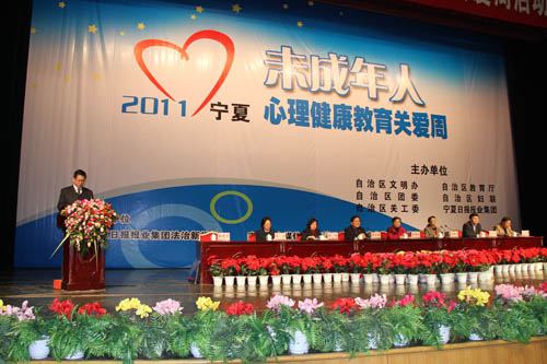 【宁夏大学新闻中心讯 李斌/图文】12月 9日 上午,自治区文明办、教育厅、团委、妇联、关工委在人民会堂举办以“心关爱、新成长”为主题的青少年心理教育关爱周活动启动仪式。原自治区政协副主席、关工委副主任朱佩玲、自治区党委宣传部副部长李克强、文明办专职副主任贾捷频等单位负责同志出席启动仪式,我校教育学院100名师生参加了活动。