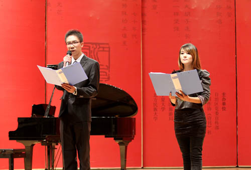 自治区党委宣传部副部长尤艳茹、宁夏大学党委副书记赵利宁分别在朗诵会上致辞。
