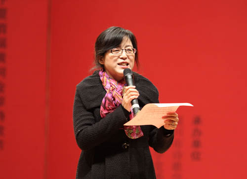 自治区党委宣传部副部长尤艳茹在朗诵会上致辞