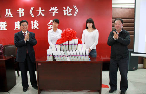 齐岳书记在讲话中指出,《大学论》系列丛书的出版凝聚了马克思主义学院十余位专家的心血,丛书的出版是宁夏大学“211工程”建设项目的成果,也是宁夏大学学生思想教育的成果。齐岳书记畅谈了阅读《德智平衡论》后的感受,认为该书突破了传统,将经验与理性有机结合,通篇充满着政治哲学和生活哲理。他指出,丛书的出版不仅会对大学生思想道德教育产生积极的影响,而且也将对教师进行思想政治教育、提高自身修养发挥积极作用。
