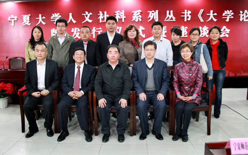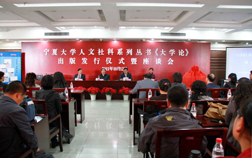 【宁夏大学新闻中心讯 黄二宁/图 马晓琼/文】10月12日下午,宁夏大学人文社科系列丛书《大学论》出版发行仪式暨座谈会在A区主楼6楼会议室举行。宁夏大学党委书记齐岳、党委副书记赵利宁,自治区黄河出版传媒集团有限公司副总经理、阳光出版社社长郭光华,阳光出版社总编辑吴月霞出席仪式。区内兄弟院校代表、我校马克思主义学院等相关部门负责人及学生代表近百人参加了发行仪式。仪式由赵利宁副书记主持。