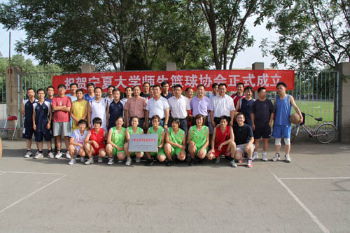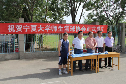 【宁夏大学新闻中心讯 刘富祥/图 赵亚峰/文】7月6日,我校部分师生篮球爱好者齐聚校本部B区篮球场,参加宁夏大学师生篮球协会成立仪式。校工会主席尚晓东,体育学院党总支书记戴兴安,校体委副主任、体育学院院长刘旭东,国家大学生文化素质教育基地办公室主任马亦兵应邀出席成立仪式。