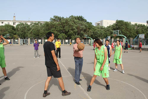 仪式之后,师生篮球协会与校学生女子篮球队进行了首场友谊比赛,尚晓东主席为友谊比赛开球,并与其他与会领导和师生观看了比赛。随后,校师生篮球协会应邀与北方民族大学教工代表队进行了友谊比赛。