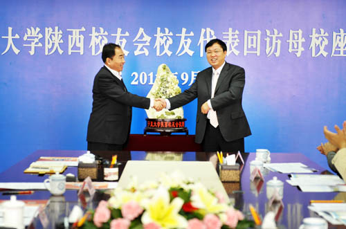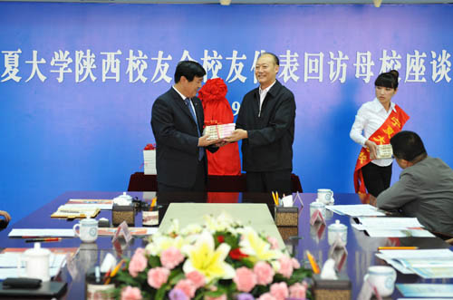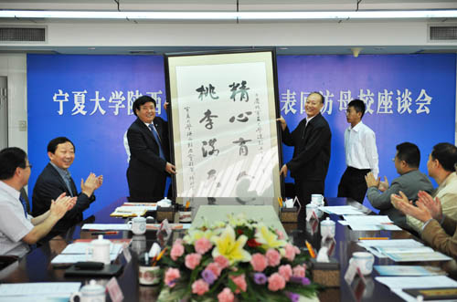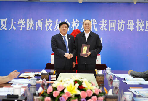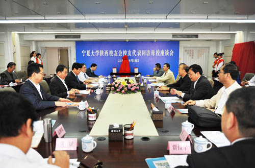 【宁夏大学新闻中心讯 黄二宁/图 翟伟/文 】9月15日,我校陕西校友会校友代表团一行八人回访母校。陕西校友会名誉会长、兰州军区联勤部原政委、少将王焕新,我校校友会副会长、陕西校友会会长、陕西中登集团副董事长、总经理宋玉,陕西校友会副会长、西安音乐学院工会副主席汤建宇,陕西咸阳市电视台广告中心主任高清甫,西安日报社《现代保健报》总编武一平, 陕西校友会秘书长、陕西省肿瘤医院人事部朱方方,陕西校友会副秘书长、中国银行陕西分行工会督导贾俊宁,陕西校友会副秘书长、陕西中登集团党委委员、团委书记方建军等一同回访。当日上午,校友们与校党政领导在十一楼会议室举行了宁夏大学陕西校友会校友代表团回访母校座谈会。我校党委书记齐岳、校长何建国、副书记赵利宁、副校长谢应忠出席座谈会。校党委办公室等相关部门、学院负责人20余人参加座谈会。谢应忠副校长主持座谈会。