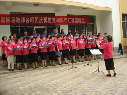 【宁夏大学新闻中心讯 离退休人员服务处 刘彦宁∕文】6月29日上午,南湖园老教师合唱团庆祝建党九十周年红歌演唱会在南校区离退休人员活动室室外场地举行。
