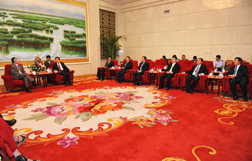 【宁夏大学新闻中心讯 黄二宁 /图 文 】9月9日下午,自治区政府主席王正伟在悦海宾馆综合楼会见了前来我校参加“上海交大、宁夏大学对口支援10周年庆典大会,中国·新西兰三校合作协议签字仪式”的新西兰梅西大学校长史蒂夫·马哈瑞及新西兰驻华大使卡尔·伍开文一行。自治区副主席郝林海,自治区政府副秘书长、办公厅主任王紫云,自治区教育厅厅长郭虎,自治区外事办主任李杰,我校党委书记齐岳、校长何建国、副校长谢应忠陪同会见。