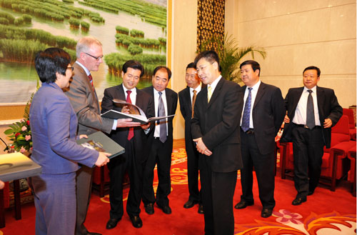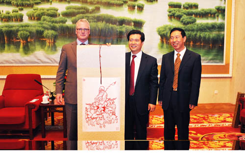 王正伟主席与卡尔·伍开文大使互赠礼物