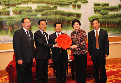 王正伟主席与马德秀书记互赠礼物