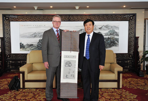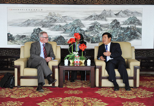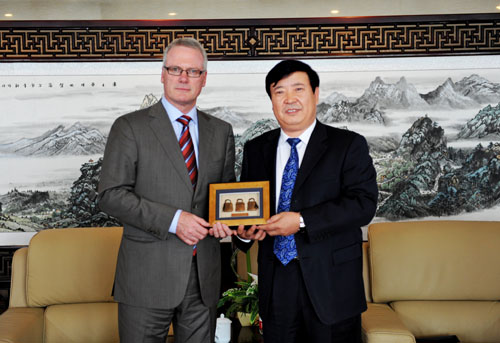 我校副校长谢应忠、校办主任杨振东、对外合作交流处处长冀斌会见时在座。