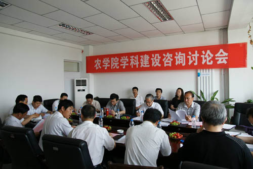 【宁夏大学新闻中心讯 农学院 李映龙/文】6月15日下午,农学院召开了“学科建设咨询讨论会”。我校副校长许兴教授、宁夏农科院原院长戈敢研究员、农牧厅副巡视员宿文军、宁夏大学研究生院院长王银春教授、“211”办公室主任王正英教授、人事处处长赵明教授、发展规划处处长郭少新教授、科技处处长李建设教授、物电学院院长李新碗教授和农学院领导、部分学科带头人近30人参加会议。咨询讨论会由农学院院长何文寿教授主持。会上,何文寿院长首先向各位领导及专家们的光临表示热烈欢迎。农学院副院长何生虎教授与曹兵教授就新增一级学科博、硕士点的方向设置、培养方案和学院“十二五”发展规划(讨论稿)做了介绍、说明。王正英教授、戈敢研究员、王银春教授、李新碗教授、宁夏农科院李颖康研究员、农牧厅张和平研究员、宁夏农技推广总站蒋学勤研究员、宁夏林研所沈效东总经理等专家们分别从学科目录设置、学科方向名称凝练、博硕士培养课程、基础科学研究、学科交叉问题、农业专业人才培养等方面进行了认真咨询和充分讨论,提出了宝贵意见和建议。农学院党总支书记何凤军代表学院全体教职工对各位专家们的辛勤工作表示衷心感谢。
