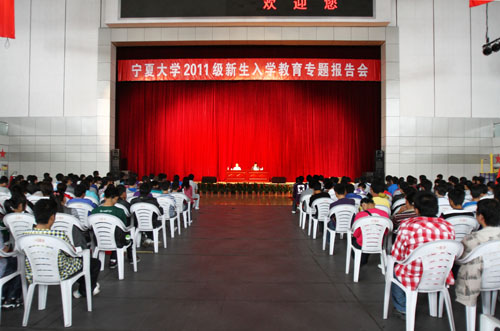 【宁夏大学新闻中心讯 党委宣传部 黄二宁 /图 翟伟 /文 】 “宁夏有多大,宁大就有多大,宁夏有多美,宁大就有多美……”9月6日上午,校党委书记齐岳为2011级本科生作了首场入学教育专题报告,近4000名新生在大学生活动中心聆听了这场以校情、校史为主题的报告。报告会由校党委副书记赵利宁主持。