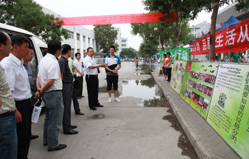 汇报会结束后,检查组一行参观了我校C区锅炉房、物电学院的节能设施,听取了相关工程技术人员和我校“仙人掌”环保协会“节能减排”活动的成果介绍。