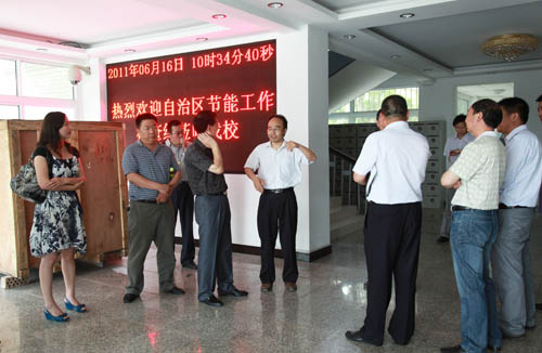 张成副校长在会上全面介绍了我校近年来开展节能工作的情况。他说,近年来,我校不仅各级领导提高认识,成立了“节能工作领导小组”,将节能工作纳入学校每年的工作要点,而且对全校的能源使用情况进行分析和研究,并有计划的安排节能改造项目。同时,学校教育和引导全校师生员工增强节能意识,组织和动员各单位积极开展节能工作,降低办学成本,提高办学效益,创建节约型校园。以节水、节电、节油、节气、节办公用品为突破口,制定了具体实施方案,并在全校范围内广泛开展了节能工作。学校在节能工作上取得了一些成绩,近期,学校被国家节能中心评为“2010年全国高校节能管理先进单位”。他表示,建设节约型校园是一项常抓常新的工作,是学校工作中永恒的主题。此次自治区公共机构节能考核检查组莅临我校检查指导工作,对于进一步巩固我校节能工作成果,加大节能工作力度,促使我校节能工作再上一个新台阶具有重要作用。