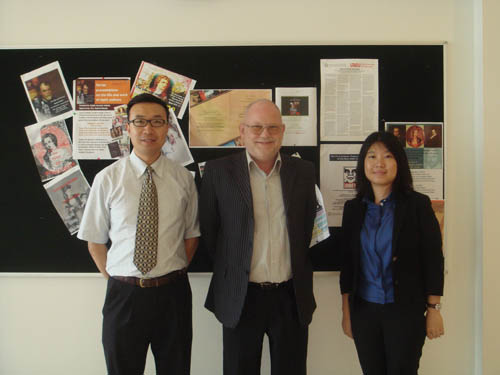 王辉博士、贾海燕老师与人文社会科学学院副院长合影