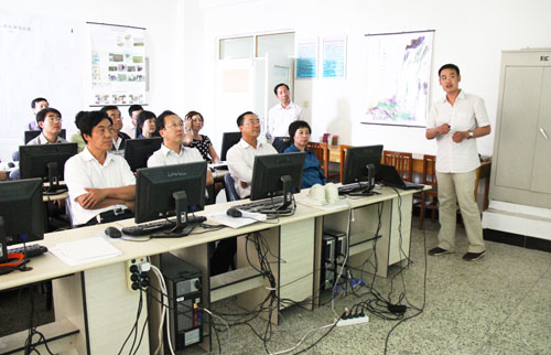 梁积裕副书记一行鸟瞰校园,并听取关于我校建设情况的汇报