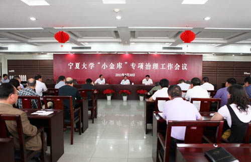 齐岳书记在会上作重要讲话。就进一步做好专项治理工作提出了要求:一是各单位要高度重视小金库专项治理工作。专项治理工作的开展既有助于形成良好的校风、建立良好的学院班子关系,增强班子的凝聚力和团结,也有助于提高学校的管理水平,有利于干部的健康成长和发展;二是各单位要严格执行财务纪律,认真贯彻落实《宁夏大学2011年“小金库”专项治理工作实施方案》。要按照文件精神的要求,对照检查,坚决反对弄虚作假,绝不姑息顶风违纪的个人和单位;三是各单位要将专项治理工作和财务工作的规范管理化相结合,要将管理水平的提高和财务制度的长效建设相结合,将此作为一项长期工作和任务来抓;四是通过此次专项治理工作,全面提升学校和各级党政领导干部的管理水平。
