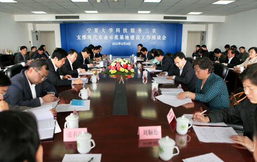 【宁夏大学新闻中心讯 黄二宁/图 翟伟/文】为贯彻落实好中央、自治区和自治区党委书记张毅4月1日在宁夏农村工作调研座谈会上的讲话精神,进一步总结经验,为自治区“三农”和现代农业作出更大贡献,4月14日下午,我校召开科技服务三农支撑现代农业示范基地建设工作座谈会。校党政领导齐岳、何建国、许兴,受聘学校的自治区现代农业示范基地科技支撑服务团队首席专家、自治区现代农业示范基地科技支撑服务团队成员及相关职能部门、学院负责人等参加了座谈会。座谈会由何建国校长主持。